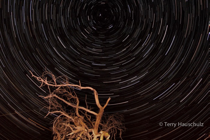 Star trails (1.5 hours) at Misquite Dunes, Death Valley, CA