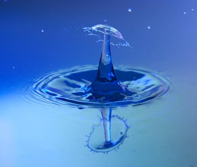 water drop collision blue filter reflection