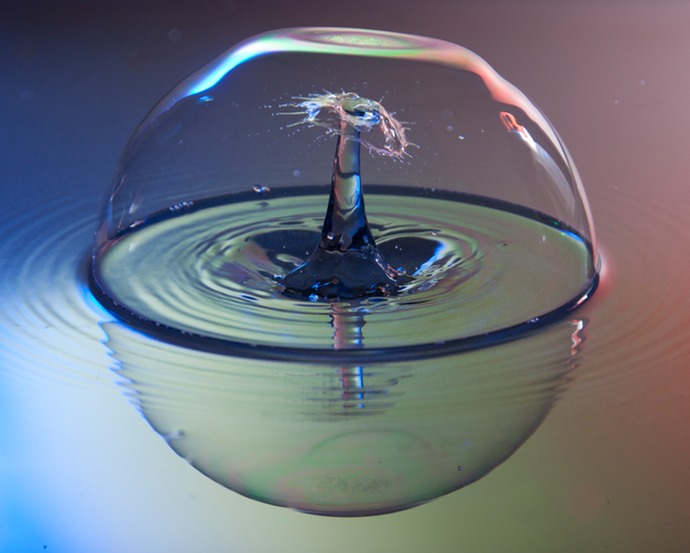 Water drop collision under the bubble
